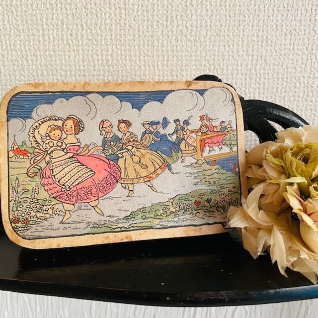 フランスで出逢いました。 イラストの描かれた古い紙箱、ドラジェボックスです。 赤ちゃん誕生のお祝いに贈られたドラジェボックスです。 蓋の四隅はギャザーが寄せられ、手の込んだ作りに愛情を感じます。 きっと描かれた絵のように、喜びにあふれたシーンが見られたのでしょう。 今は時代を経た美しい変化があらわれているボックスです。 古いものですので、経年による変色やシミ、汚れ、紙の破れなどもございます。 長い時間を経たアンティークの風合いとご理解いただきまして、お楽しみいただけますと幸いです。 サイズ:13.8㎝×8.4㎝ 高さ2㎝ (多少の誤差はご容赦ください) 《お届け》 追跡有り---------------------------------------- ●ゆうパック/他(神奈川県からの発送です)