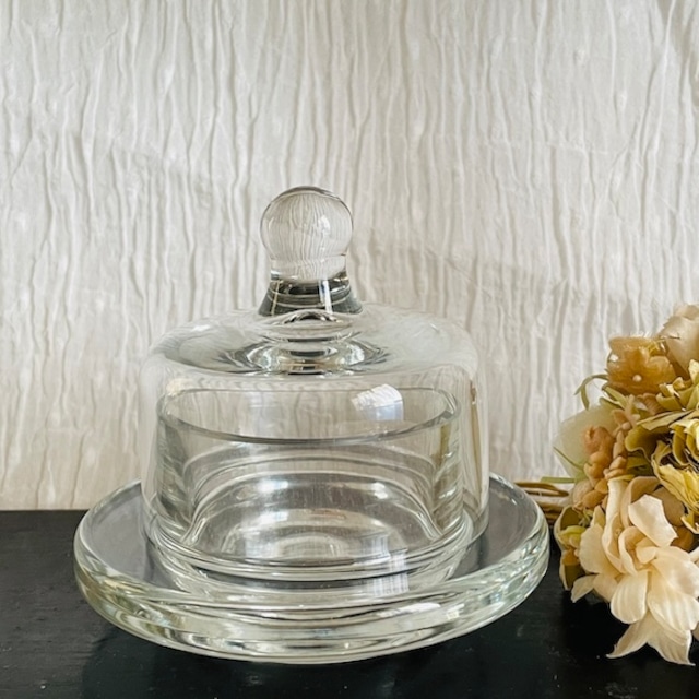フランスで出逢いました。 ガラスのバターディッシュです。 ドーム型の蓋が付いたバターディッシュ。 手のひらに乗る大きさですが、ずっしりとした重みを感じます。 バターディッシュではありますが、バターに限らず、いろいろなものを入れて楽しんでお使いいただけるかと思います。 古いものですので経年によるキズやガラスの曇り、汚れなどもございます。 長い時間を経てきたアンティークの風合いとご理解いただきまして、お楽しみいただけますと幸いです。 サイズ:口径5.5㎝ 底の直径9.5㎝ 高さ8.6㎝ (多少の誤差はご容赦ください) 《お届け》 追跡有り---------------------------------------- ●ゆうパック/他(神奈川県からの発送です)