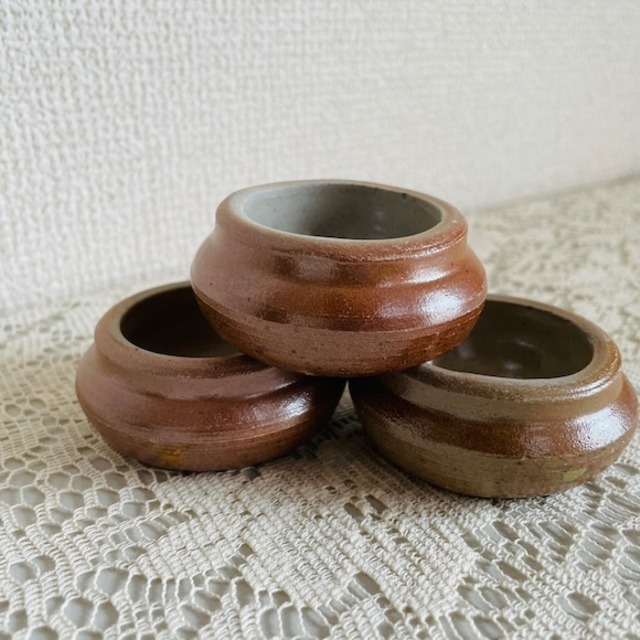 フランスから届きました。 素朴な雰囲気のキッチン用品です。 ぽってりとしたブラウン系の器。 手のひらに乗せると、やや重さを感じます。 バター入れとして使われていたものですが、塩コショウでもソースでも、また小物入れとしてでも、いろいろお使いいただけそうです。 古いものですので経年によるシミや傷、製造時の異物の混入などございます。 長い時間を経てきたブロカントの風合いとご理解いただき、お楽しみいただけますと幸いです。 サイズ:直径6cm 内法の直径4cm 高さ2.5cm (多少の誤差はご容赦ください) (*ABCいずれかお選びください) 《お届け》 追跡有り---------------------------------------- ●ゆうパック/他(神奈川県からの発送です)