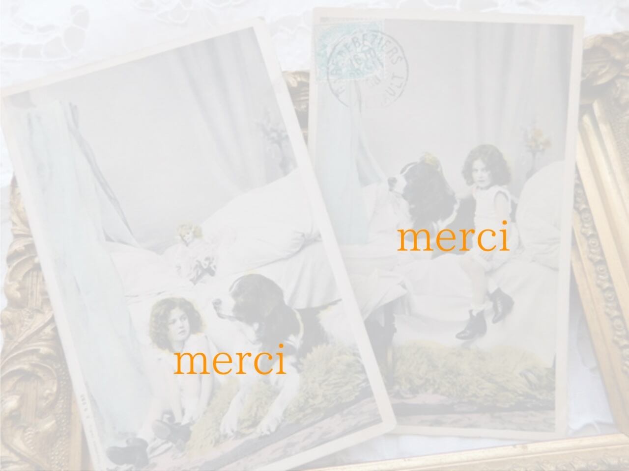フランス アンティークポストカード 犬と少女 [s081h]