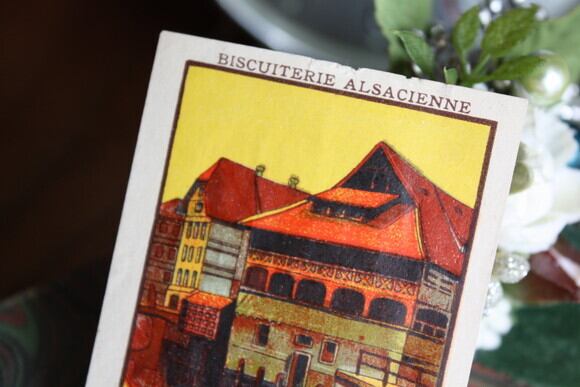 アルザス地方のお菓子屋さんのもので、ストラスブールの建物が描かれています。