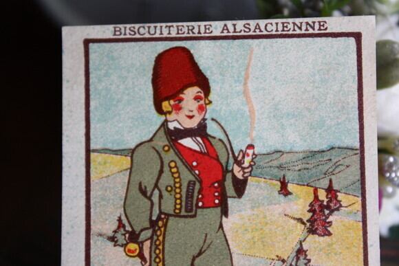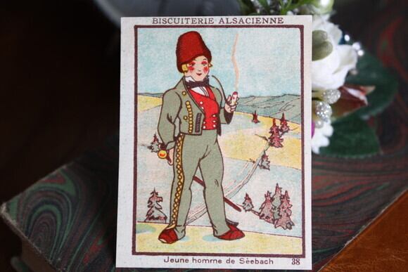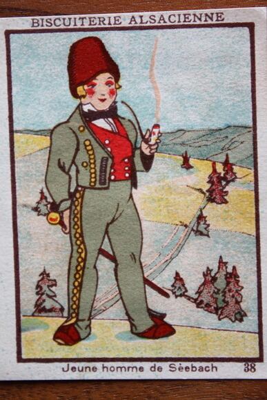 アルザス地方のお菓子屋さんのもので、アルザス地方「Seebach」の男性の姿が描かれています。