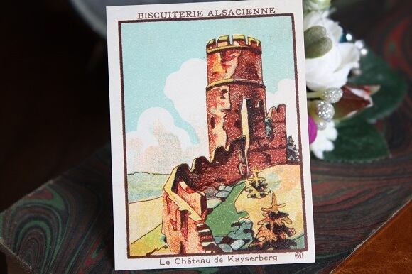 アルザス地方のお菓子屋さんのもので、アルザスに関係する絵が描かれています。
