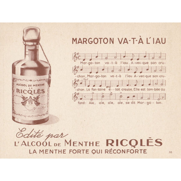 こちらは、今でも存在する、ミントリキュールのカード(飲み物ではなく、お薬のような使われ方だそうです)。