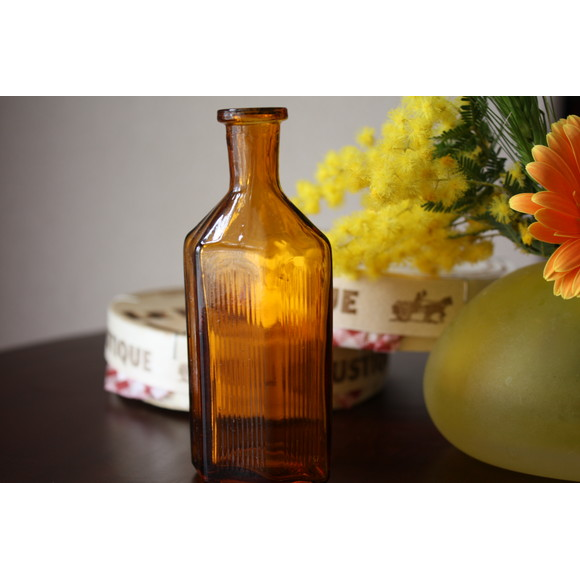 どこか懐かしい香りのする、飴(アメ)色・アンバーのアンティークボトル。