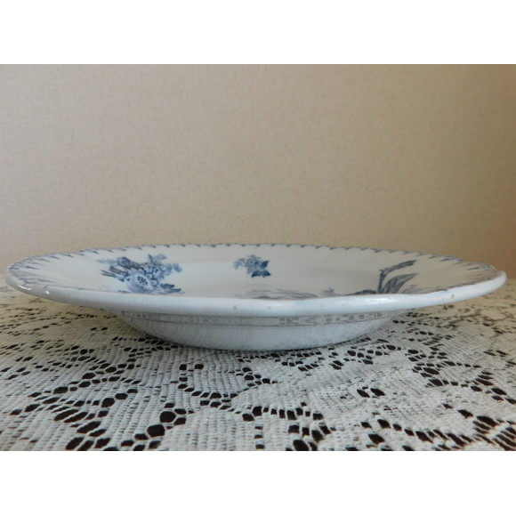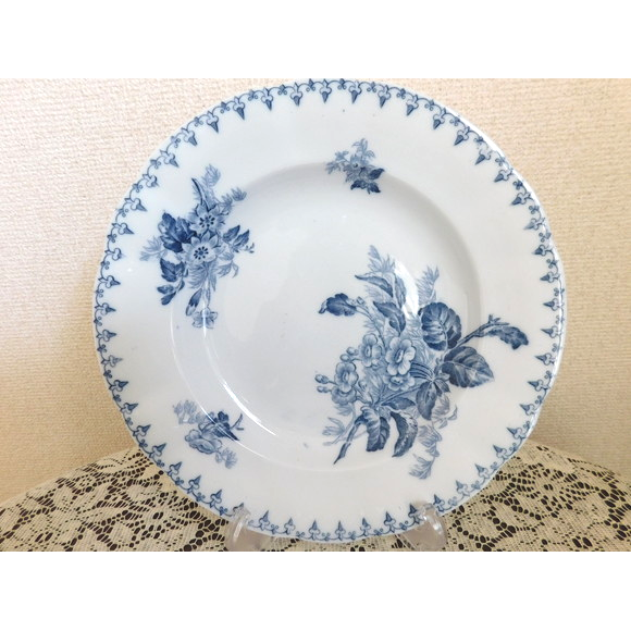 ゆらゆらと柔らかに波打ったリム部分に、ブルーで描かれたお花の絵。