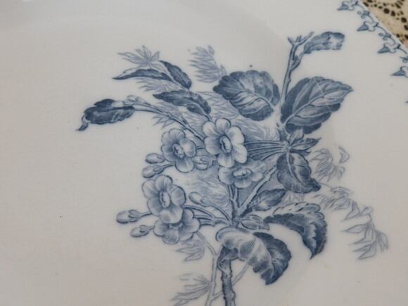 ゆらゆらと柔らかに波打ったリムに、ブルーで描かれたお花の絵。