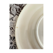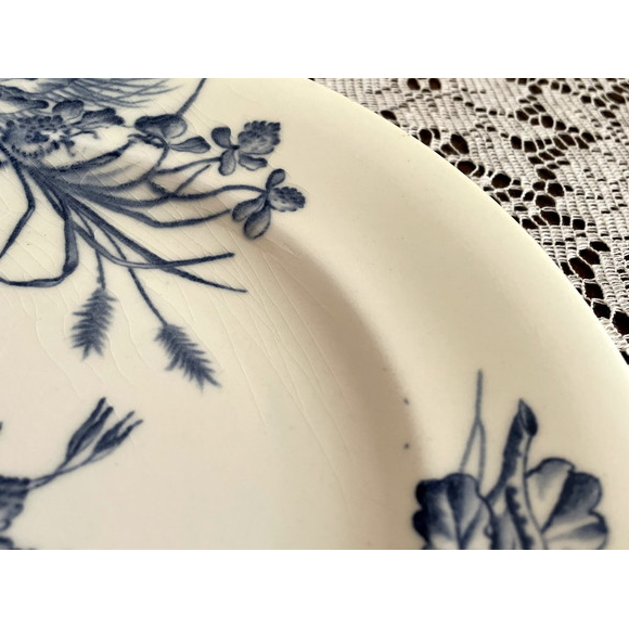 100年以上前の古いものですので、経年による変色やシミ、汚れ、カトラリーによるキズ、貫入、リムの裏部分には小さなカケも見られます。