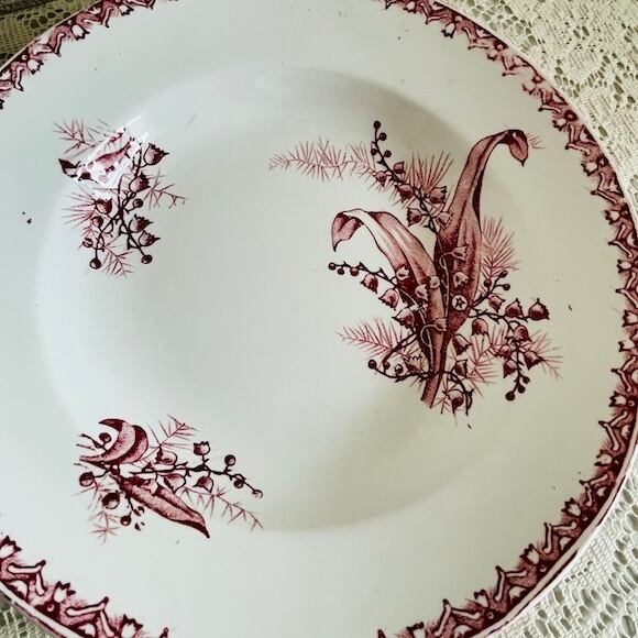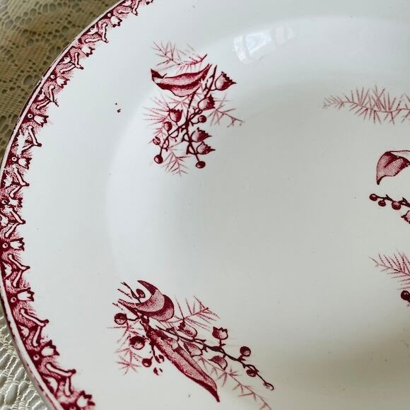 グリーン系のプレートは目にすることが多いのですが、「Muguet」の赤系プレートは見かけることの少ないお品。