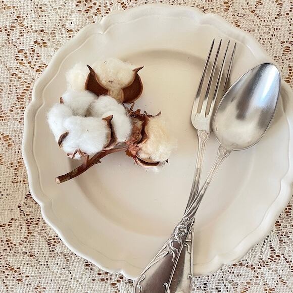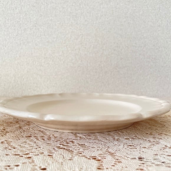 テラコッタ製の花リムプレートに、クリーム色の釉薬がかけられたお品。