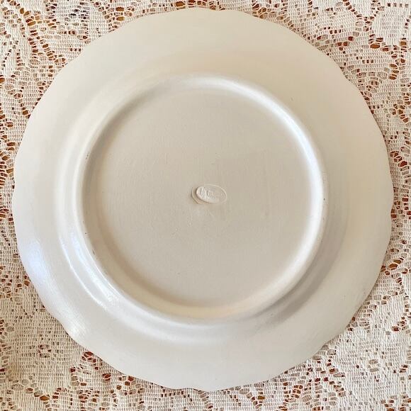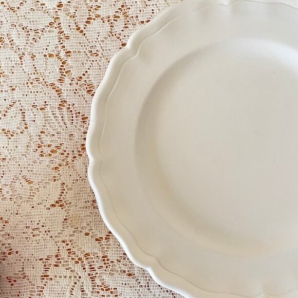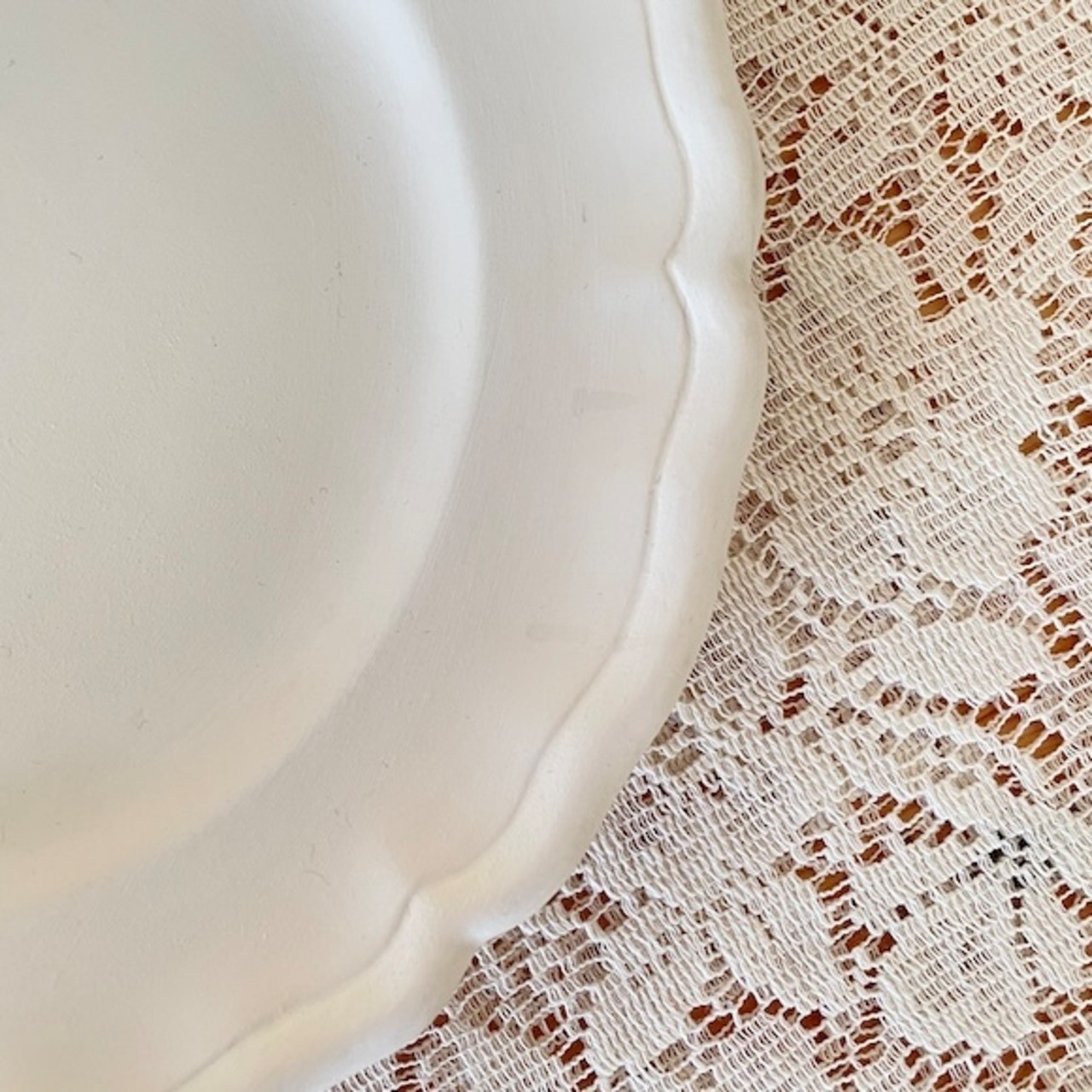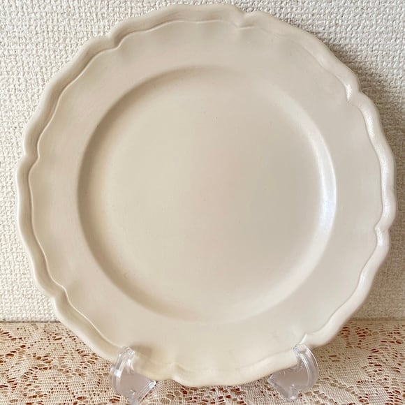 テラコッタ製の花リムプレートに、クリーム色の釉薬がかけられたお品。