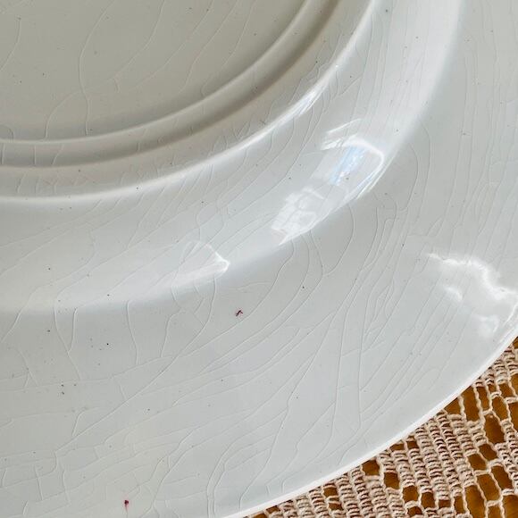古いものですので経年による汚れやシミ、プリントの擦れ、カトラリーによるキズ、製造時の異物混入や釉薬のムラ、色飛び、貫入などもございます。