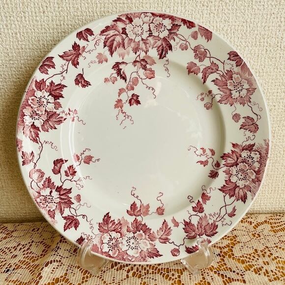 ボルドー色で、リム部分にぐるりと描かれたお花の絵が華やかです。