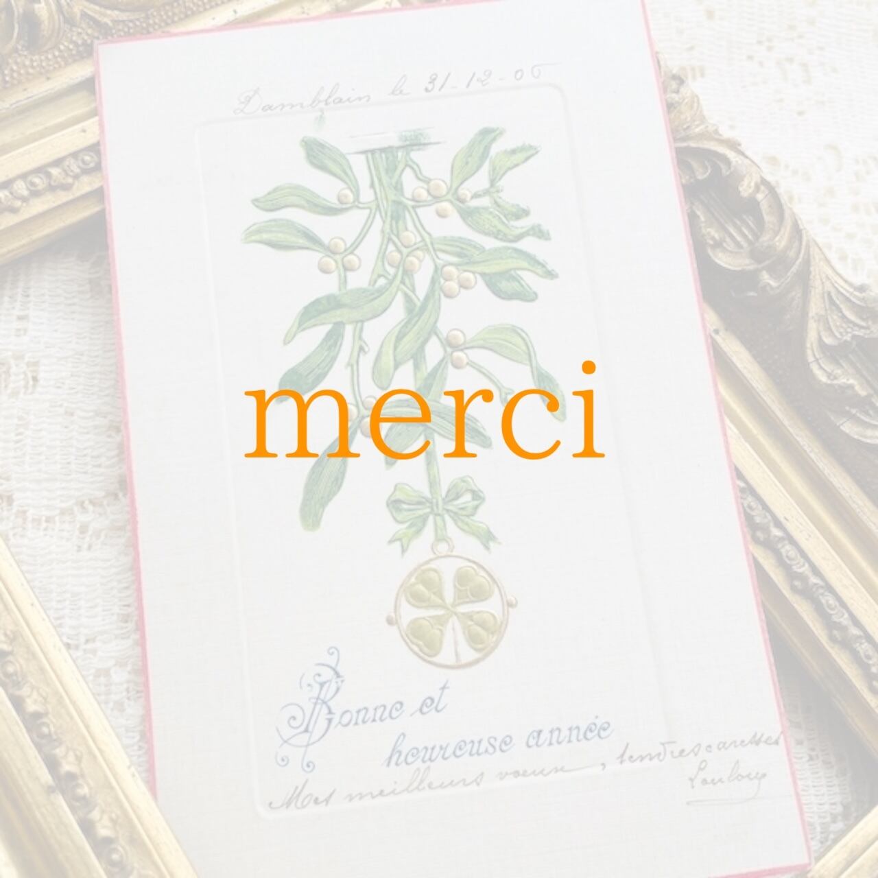 フランス アンティークポストカード ゴールドのヤドリギ [s008f]