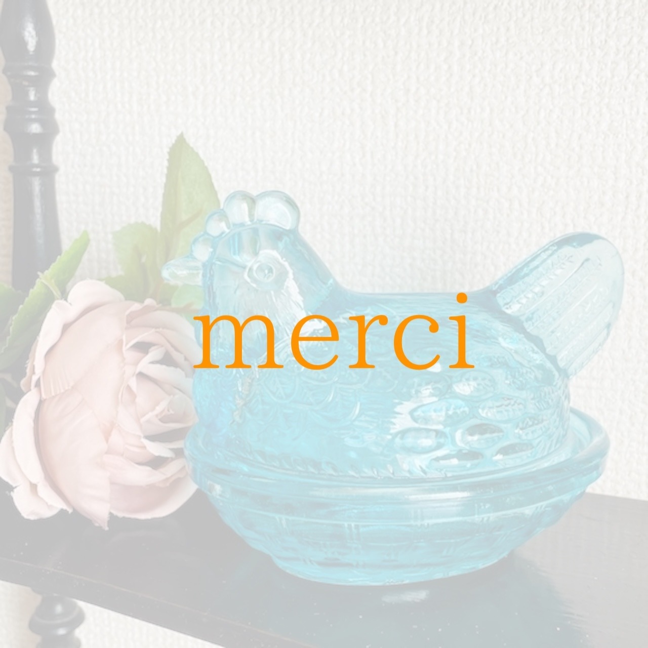 フランスブロカント ニワトリの小物入れ ブルーのガラス製 [a023]