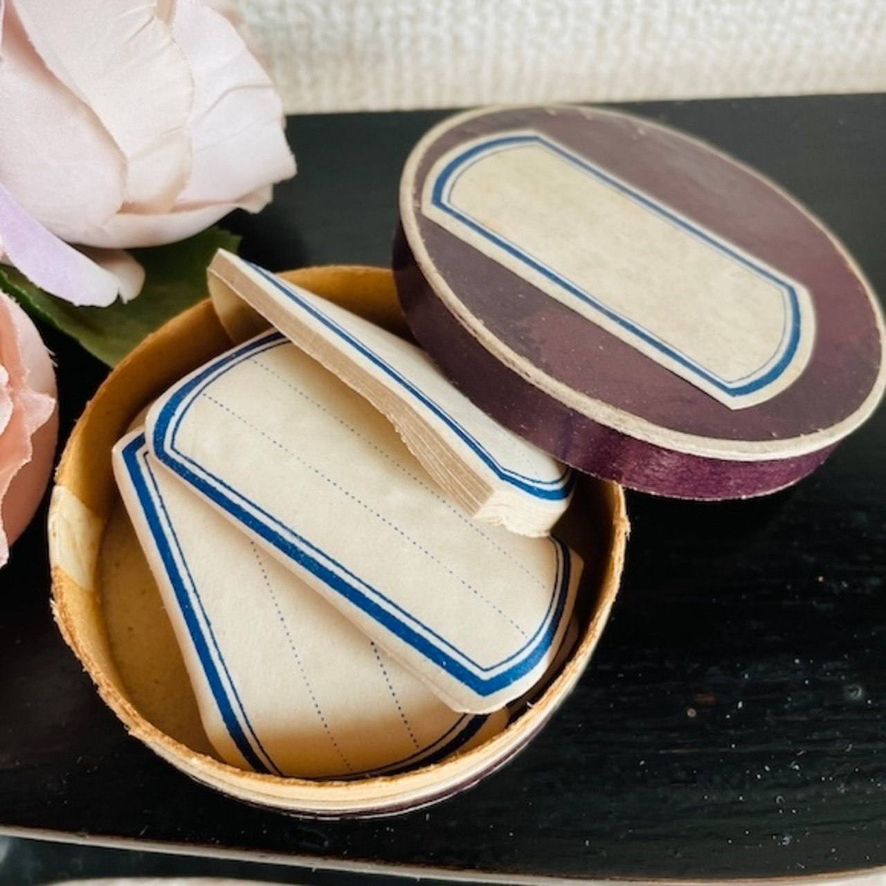 蓋をあけると溢れんばかりの紙ラベル。