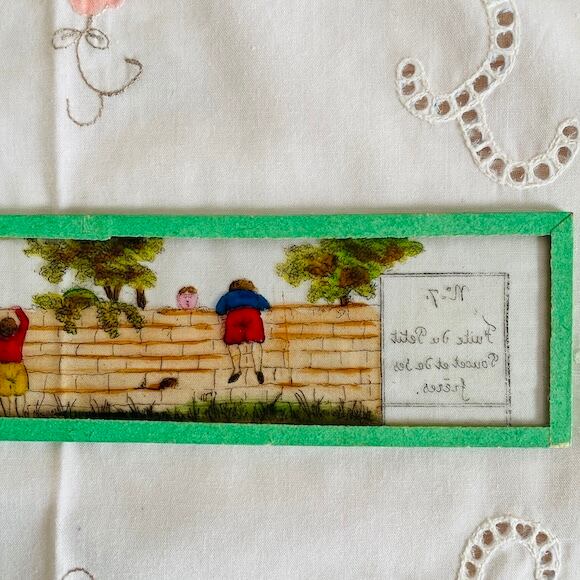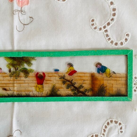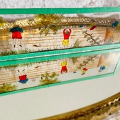 古いものですので縁取りの紙に破れも見られますし、ガラス絵の部分に傷や汚れ、アウトラインや色の剥がれ、なども見られます。