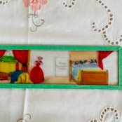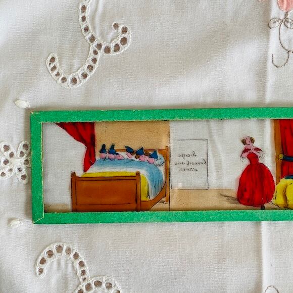 あかりに透かして見ると、思ったより鮮やかな色がよみがえり、ストーリーが動き出すような気がします。