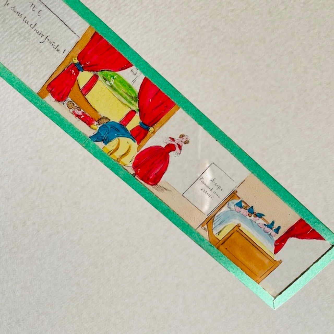 マジックランタン(幻灯機)に使われるガラス絵です。