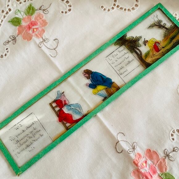 マジックランタン(幻灯機)に使われるガラス絵です。