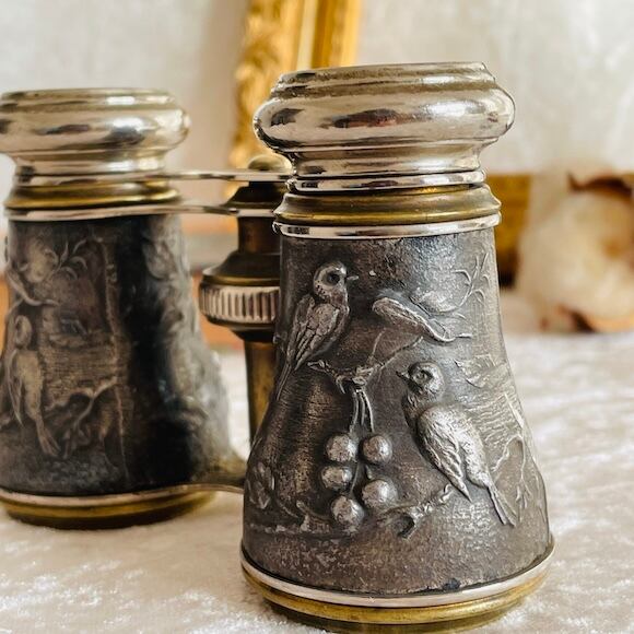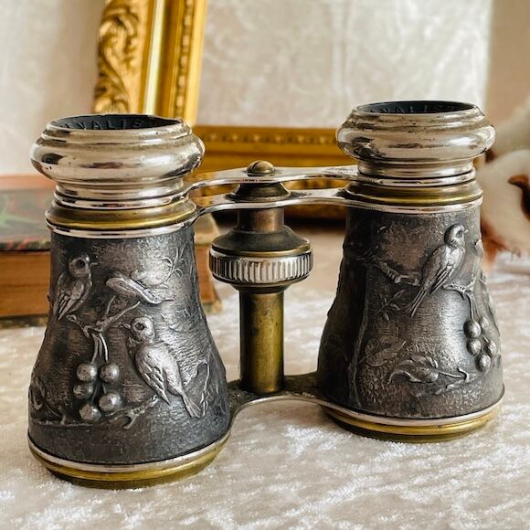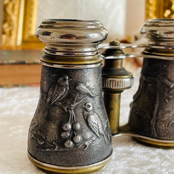 つがいの小鳥とさくらんぼのような木の実がモチーフになったオペラグラスです。