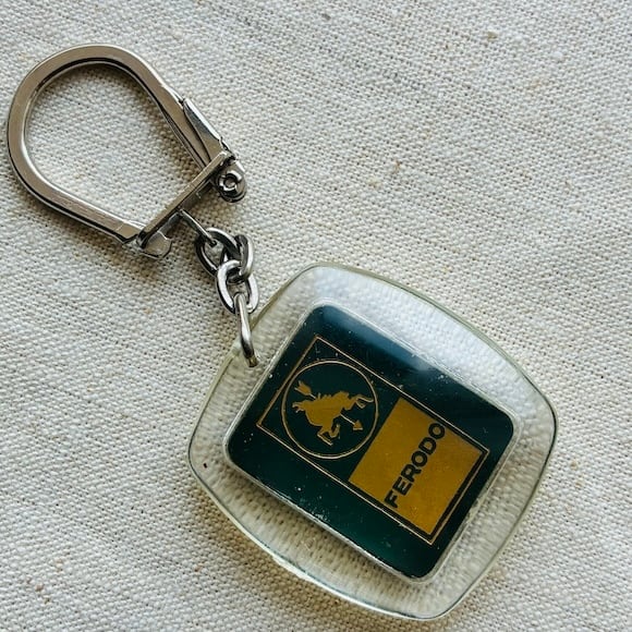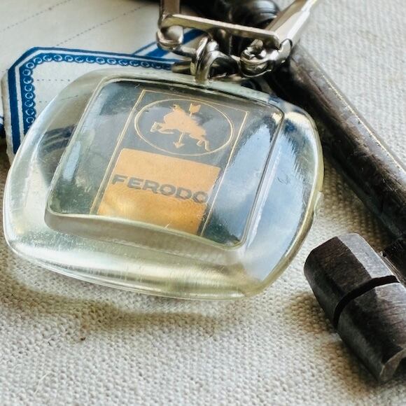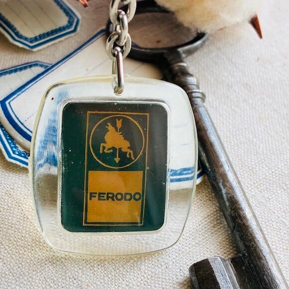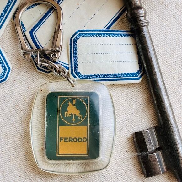 FERODOは自動車の部品、ブレーキのメーカー。馬と矢のロゴが入っています。