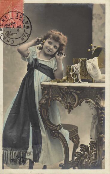 お出かけ前に、アクセサリー選びに一生懸命な少女。