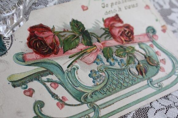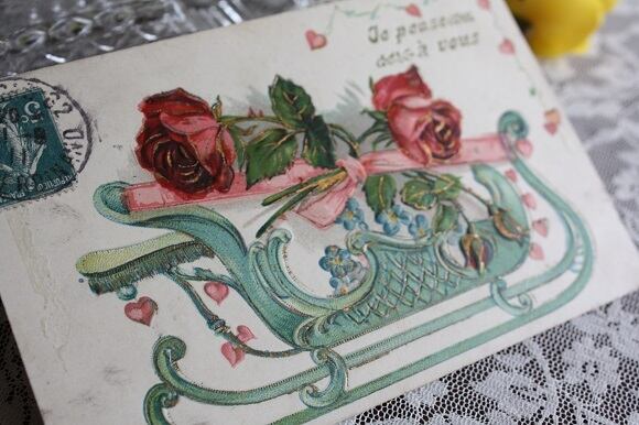 そりに乗った二輪のバラは、幸せな二人をあらわしているのでしょうか。