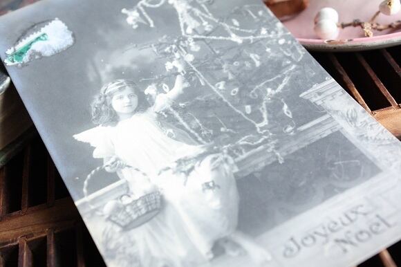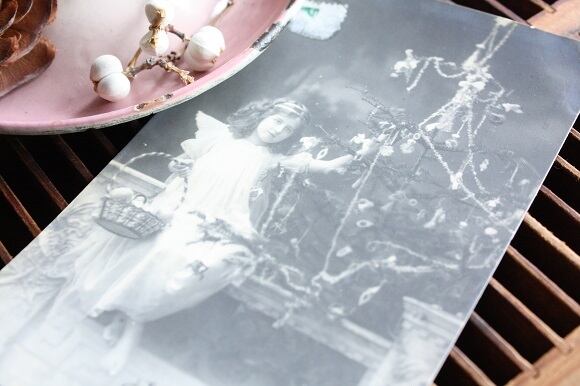 裏面には文字が書かれており、表面には切手が貼られていた跡があります。