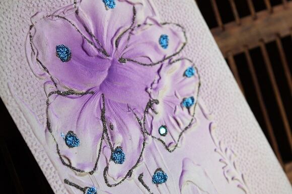 エンボスのお花に、ラメやスパンコールなどで装飾がされています。