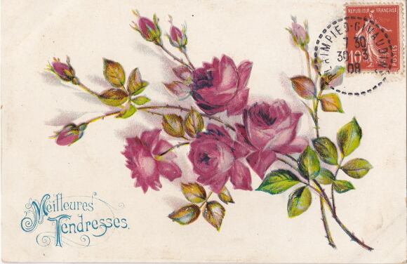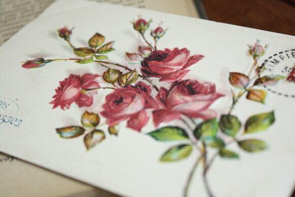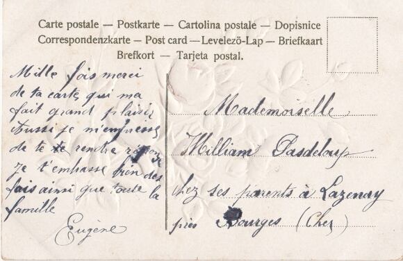 裏面には文字が書かれ、表に貼られた切手には当時の消印が押されています。
