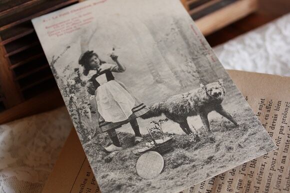 フランス アンティークポストカード 赤ずきんちゃんシリーズ3 未使用 [s023]